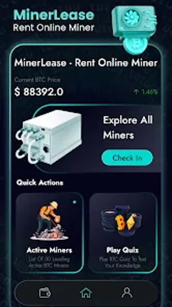 MinerLease – Rent Online Miner to aplikacja symulacyjna przeznaczona dla użytkowników, którzy chcą poznać zasady wydobywania kryptowalut w bezpiecznym i przyjemnym środowisku. Umożliwia budowanie oraz zarządzanie własnym wirtualnym zestawem wydobywczym poprzez wynajem wirtualnych górników, śledzenie postępów oraz ulepszanie mocy wydobywczej bez konieczności inwestycji w rzeczywisty sprzęt. Aplikacja jest całkowicie darmowa i skierowana głównie do celów edukacyjnych oraz rozrywkowych.